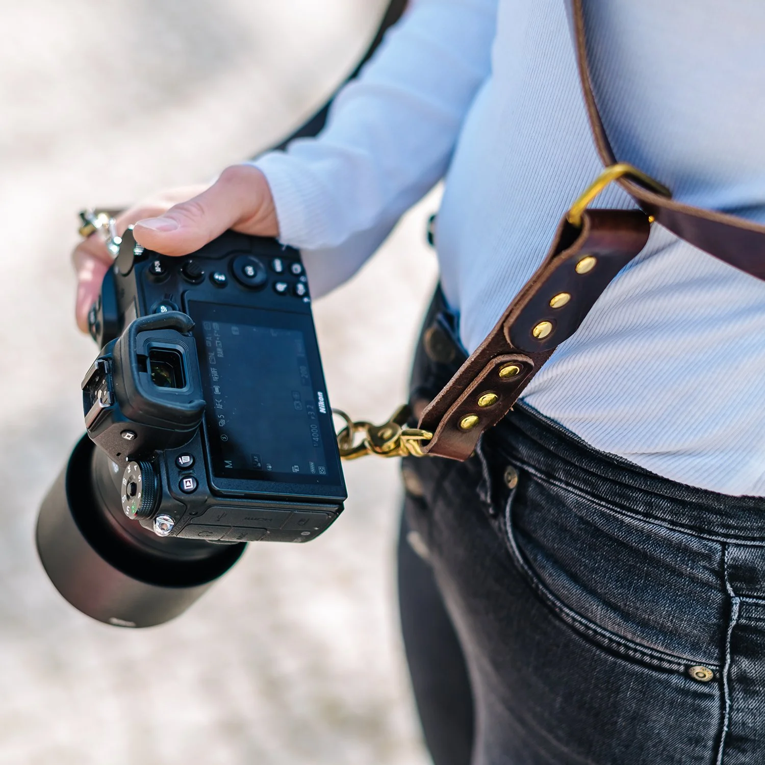 Wenn ich längere Zeit fotografiere, bekomme ich oft Nackenverspannungen. Eine tolle Lösung kann so ein Kameragurt sein, der das Gewicht der Kamera besser verteilt, als wenn sie um den Hals baumelt.
